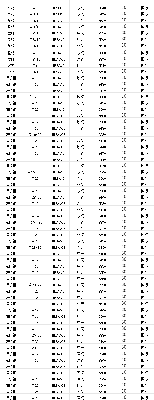 2025年10月6日(10.15)舟山聯(lián)士鋼材建筑材料現(xiàn)款價(jià)格